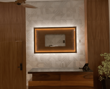 Creamos ambientes acogedores con detalles en madera natural que resaltan la calidez y simplicidad del espacio.